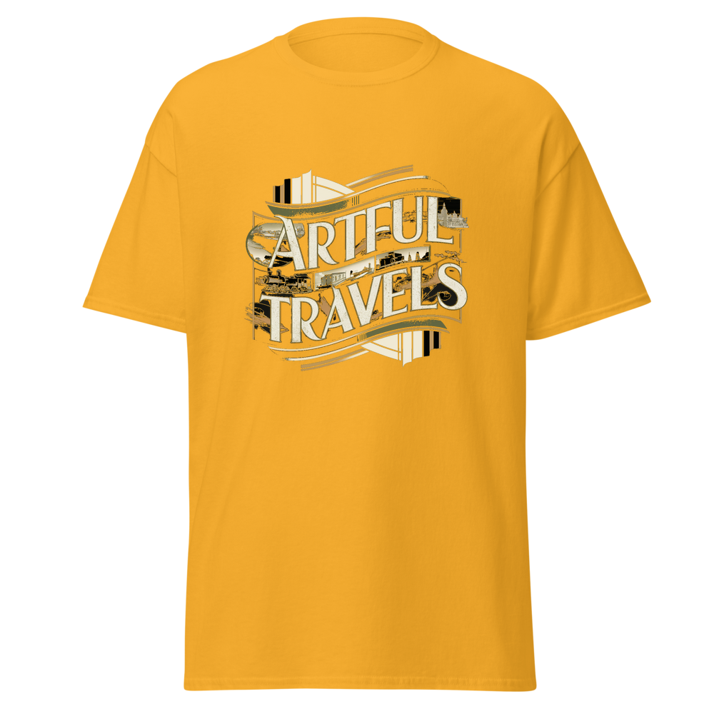 Indulge your love for travel with this stylish t-shirt. It features elegant art deco designs and vintage travel scenes, offering a timeless and charming look. The soft and lightweight fabric makes it comfortable for all-day wear.
