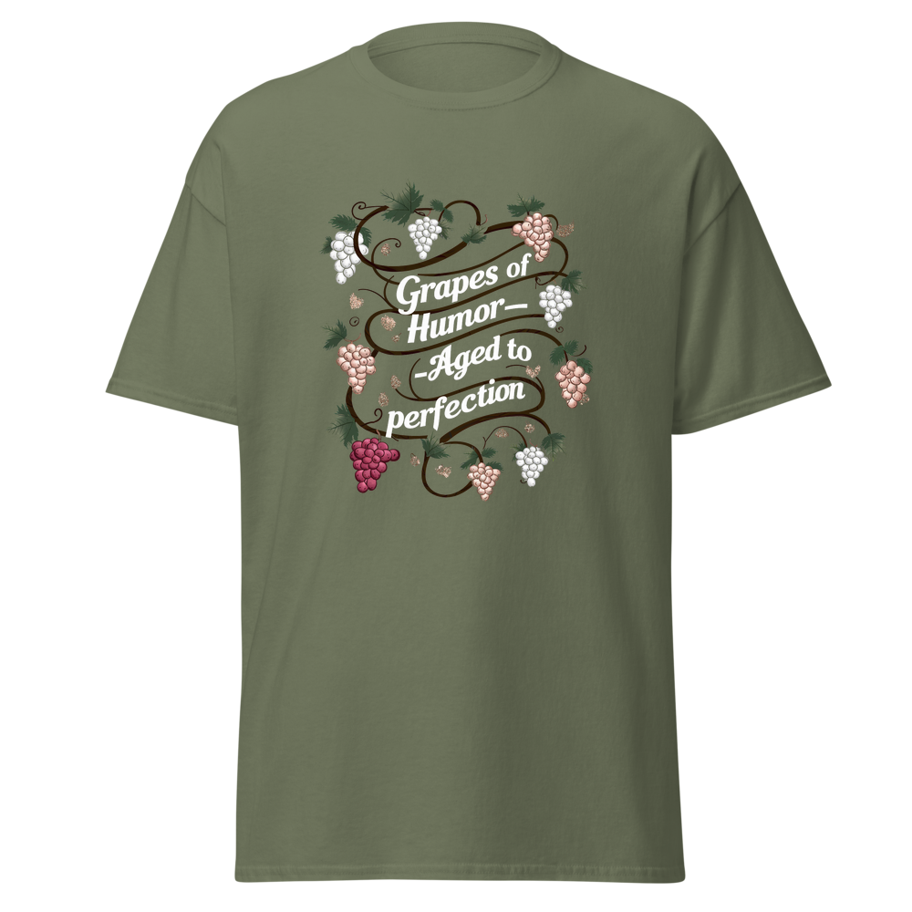 Indulge in a comfortable and stylish t-shirt that features a lively and humorous graphic. Ideal for wine enthusiasts and those who appreciate a touch of fun, this t-shirt offers both comfort and a unique design.