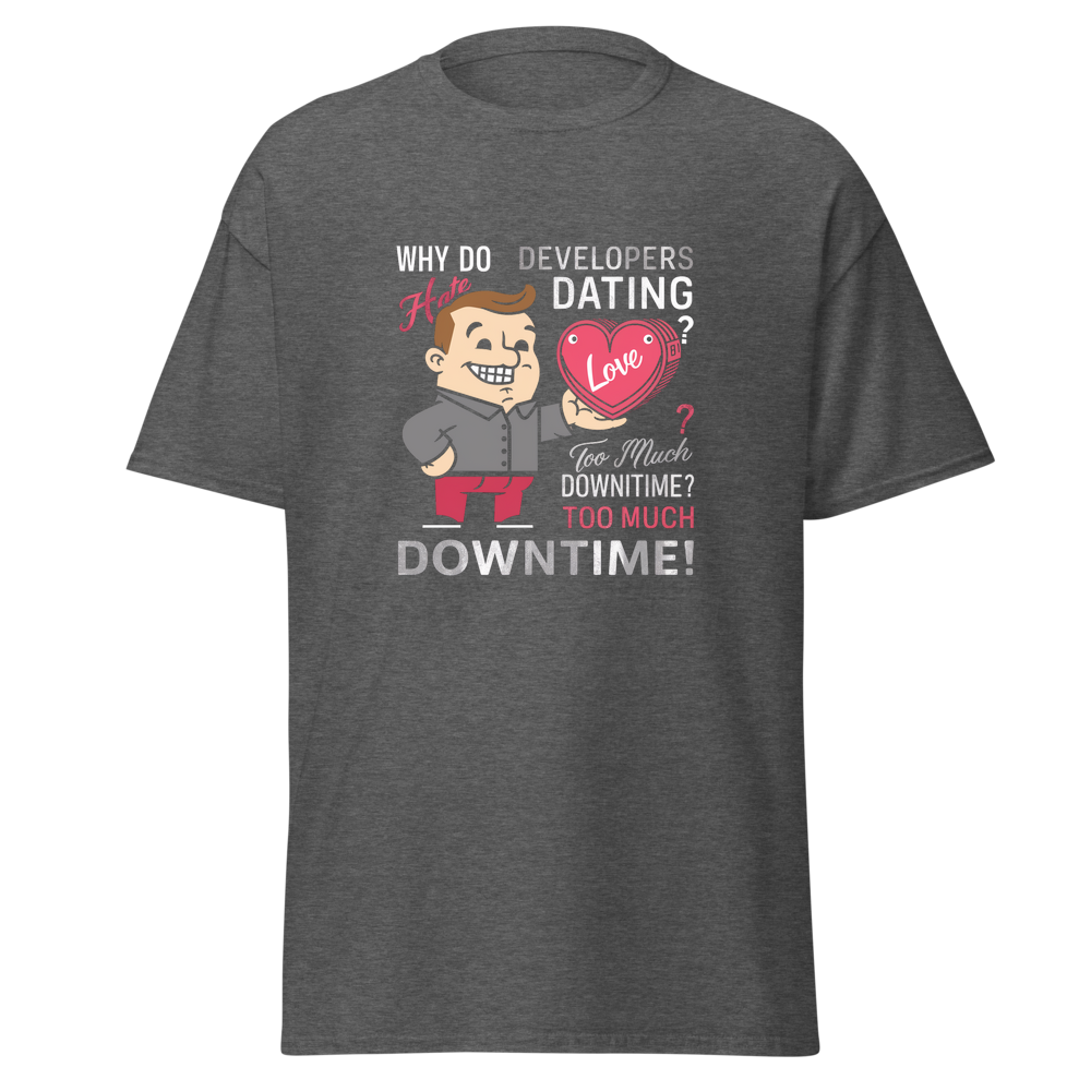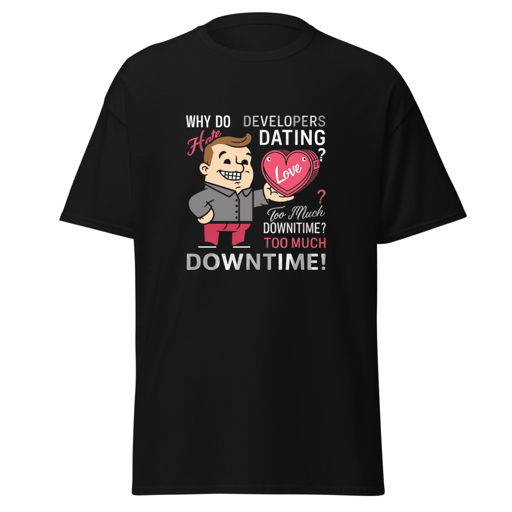 - Graphic Design: Features a playful cartoon character holding a heart with text and a tech – industry pun