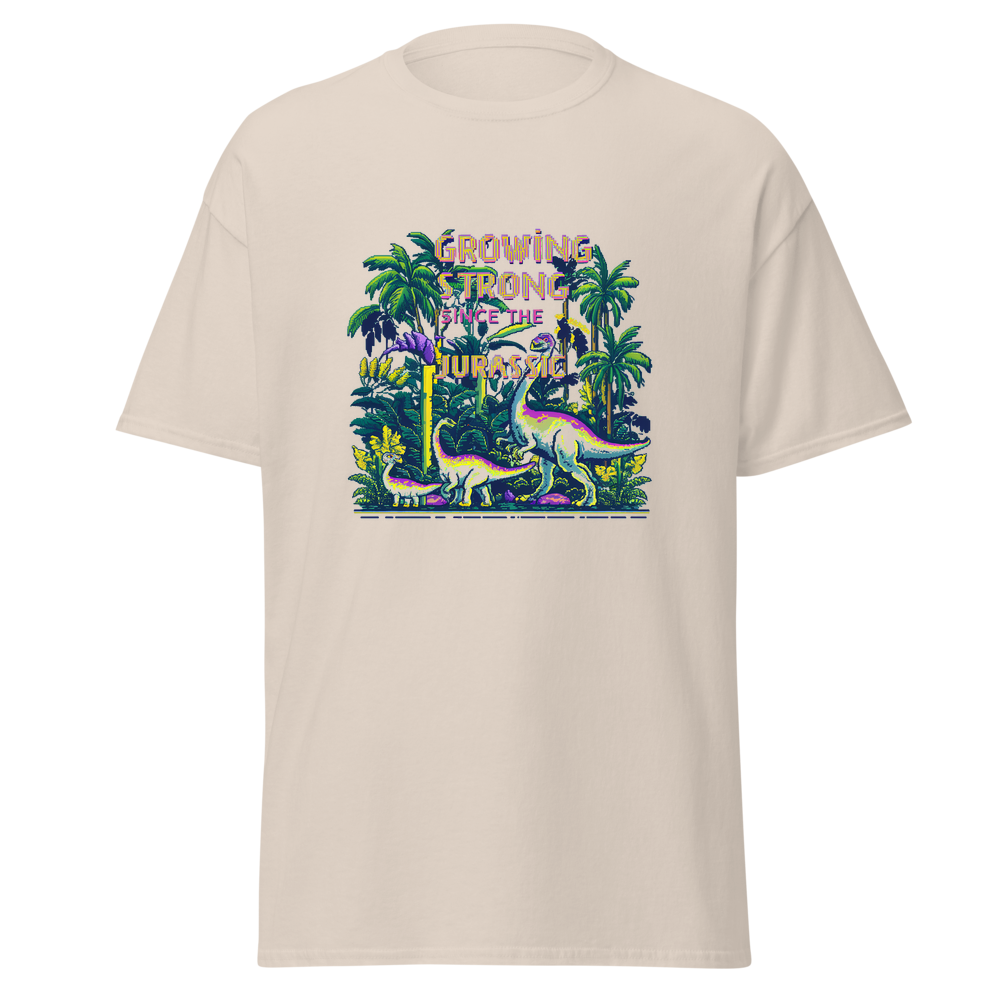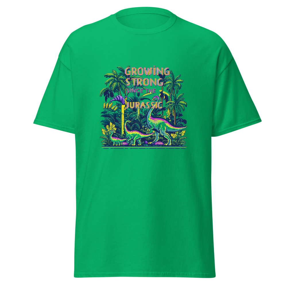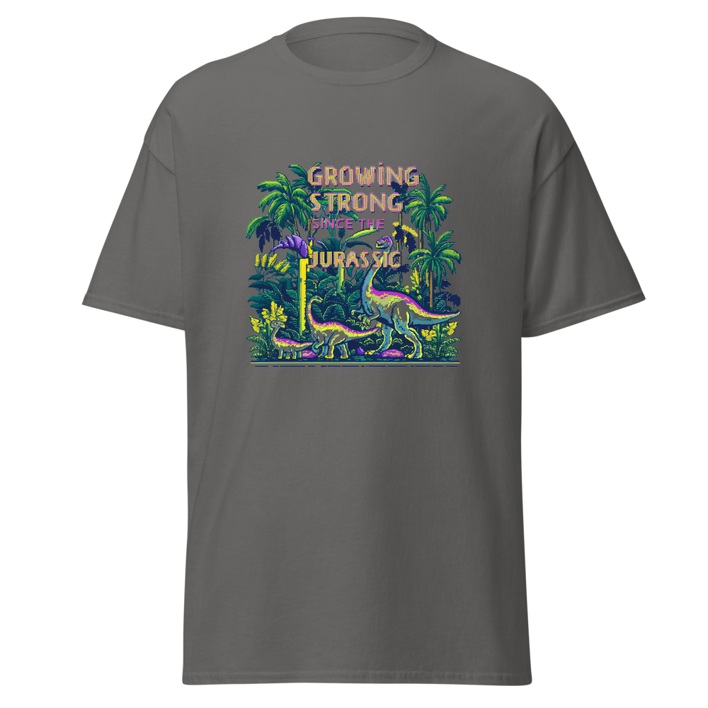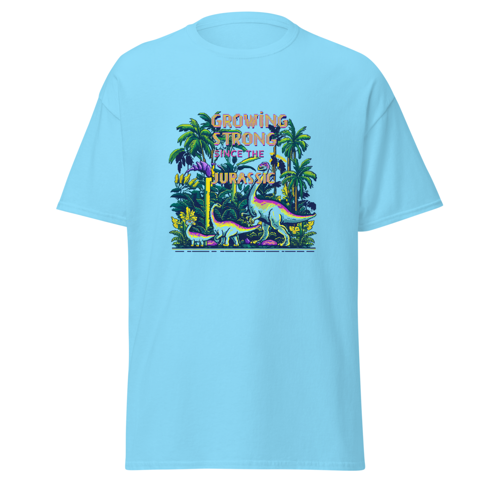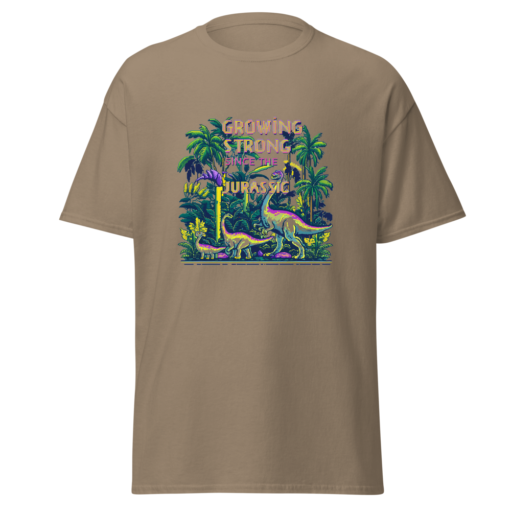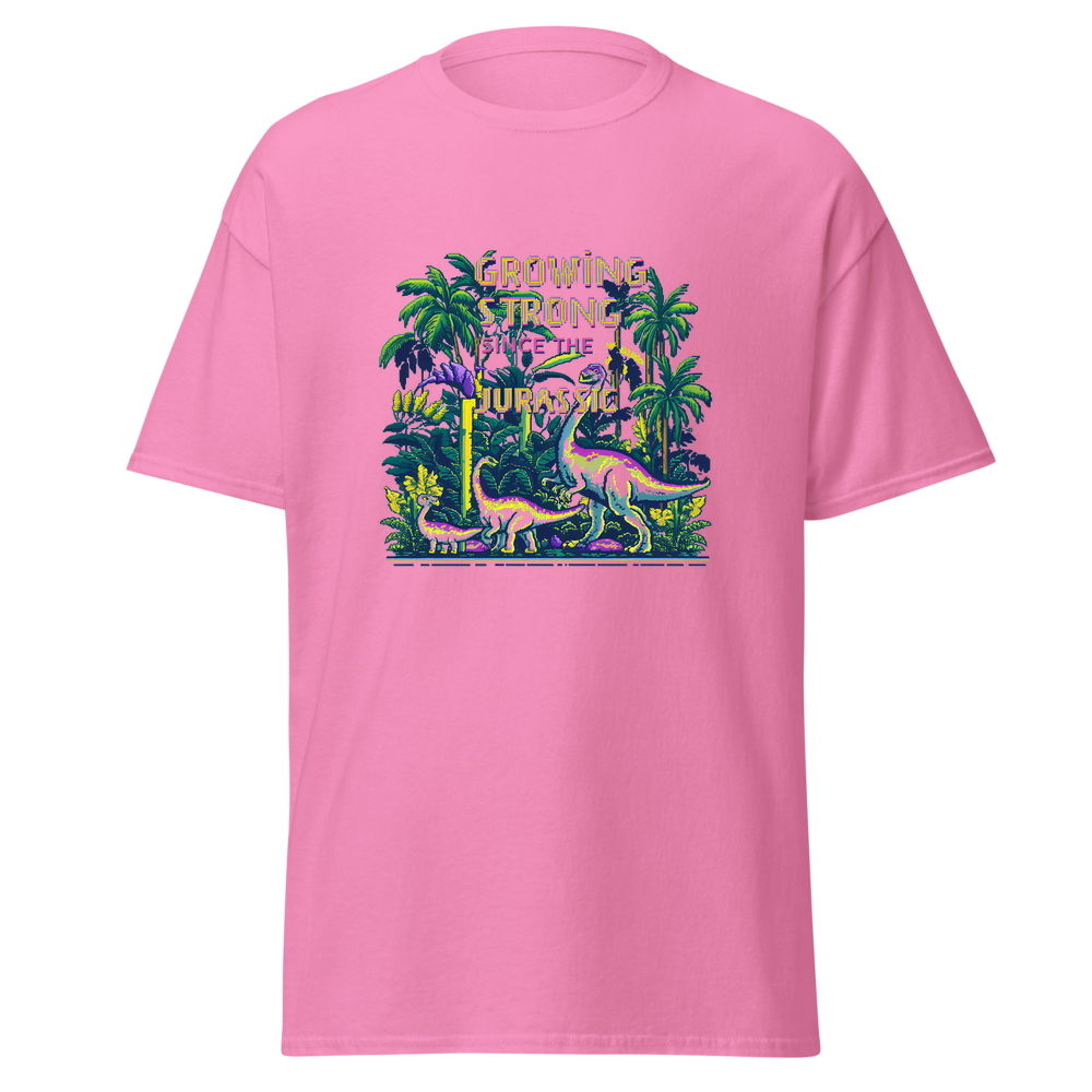 Step into a prehistoric world with this charming t-shirt. Featuring a pixel – art graphic of dinosaurs in a jungle, it offers a blend of nostalgia and style. The soft and lightweight fabric ensures comfort for all – day wear.