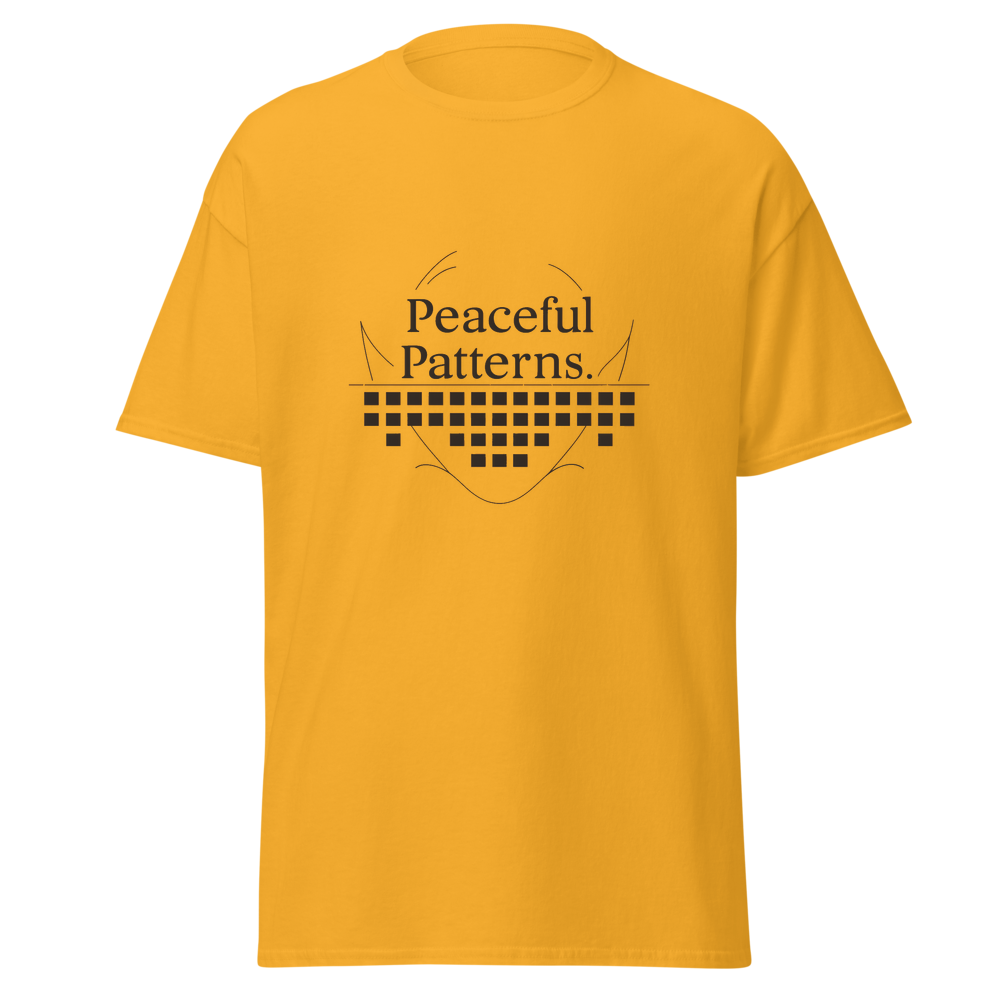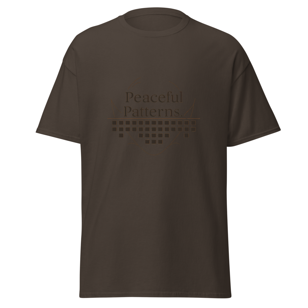 These crew neck t-shirts offer a blend of style and comfort. With a simple yet elegant checkerboard pattern at the bottom and a unique printed graphic, they are perfect for those who appreciate clean and minimalistic designs. Ideal for adults and yoga practitioners, they bring a peaceful and harmonious vibe.