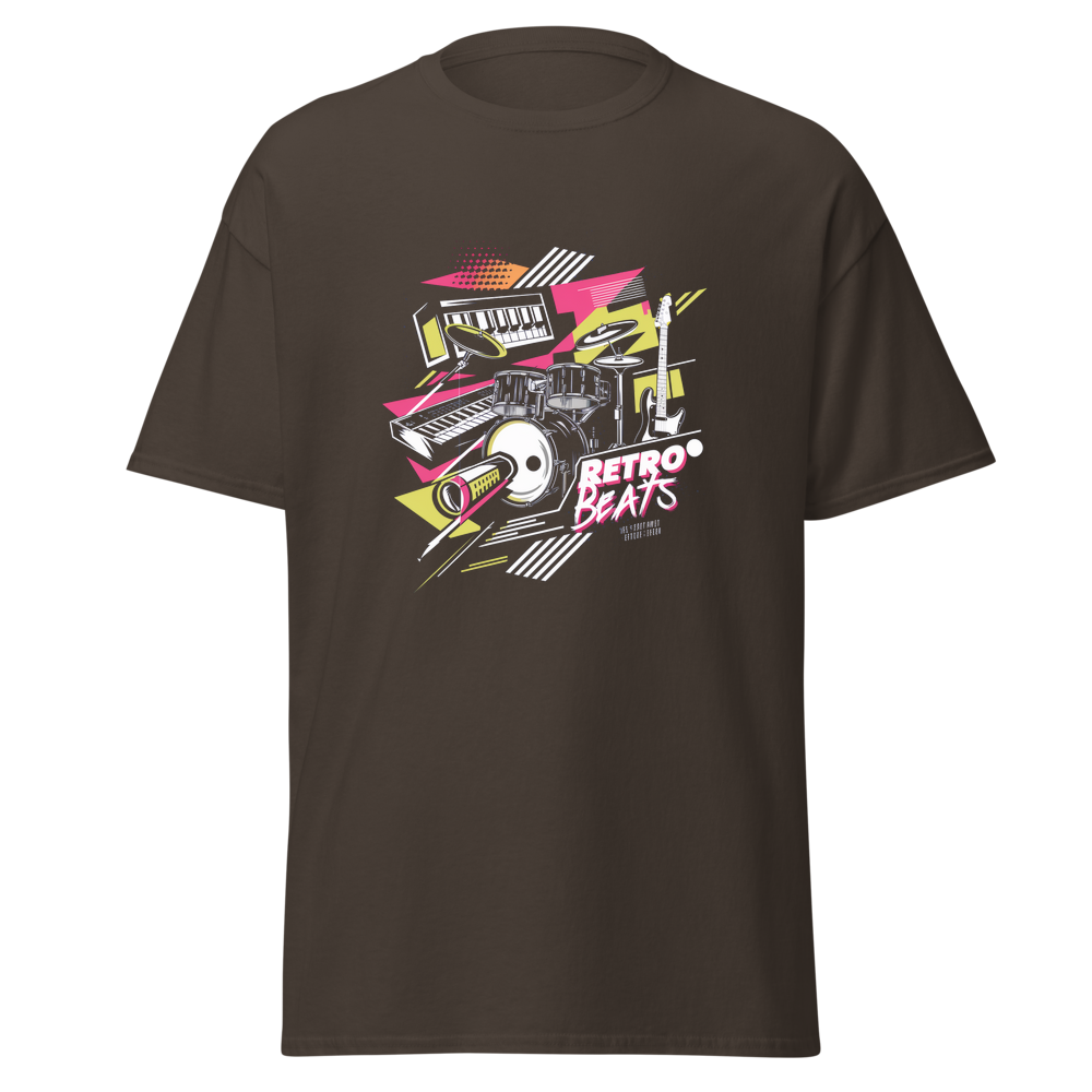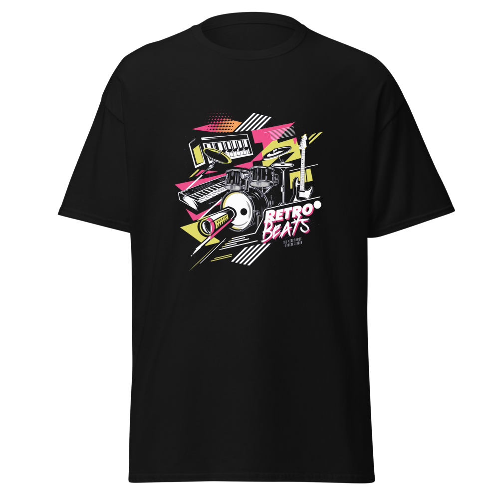 Step back in time with this classic retro graphic t-shirt. It features a modern pop – art design of 80s musical instruments, perfect for those who love 80s and 90s pop culture. Comfortable and flattering, it’s a great addition to any casual wardrobe.
