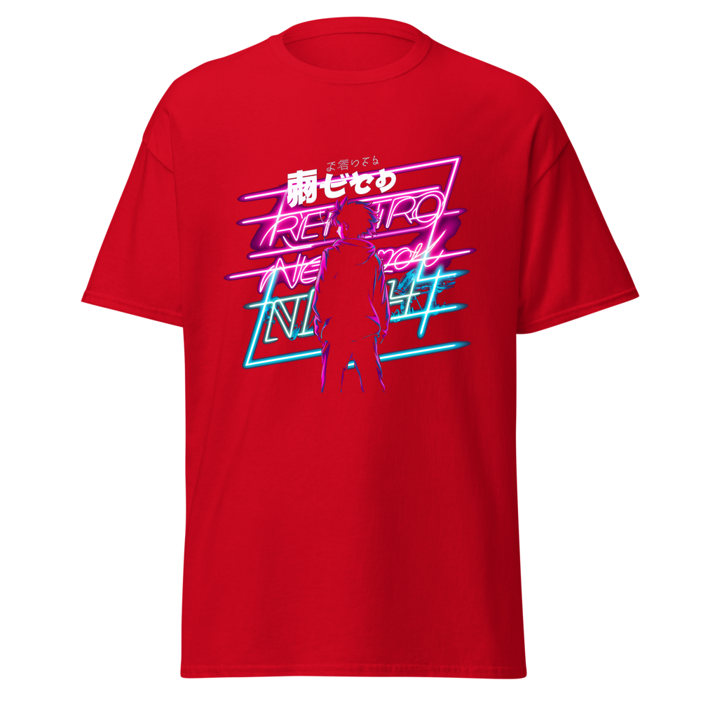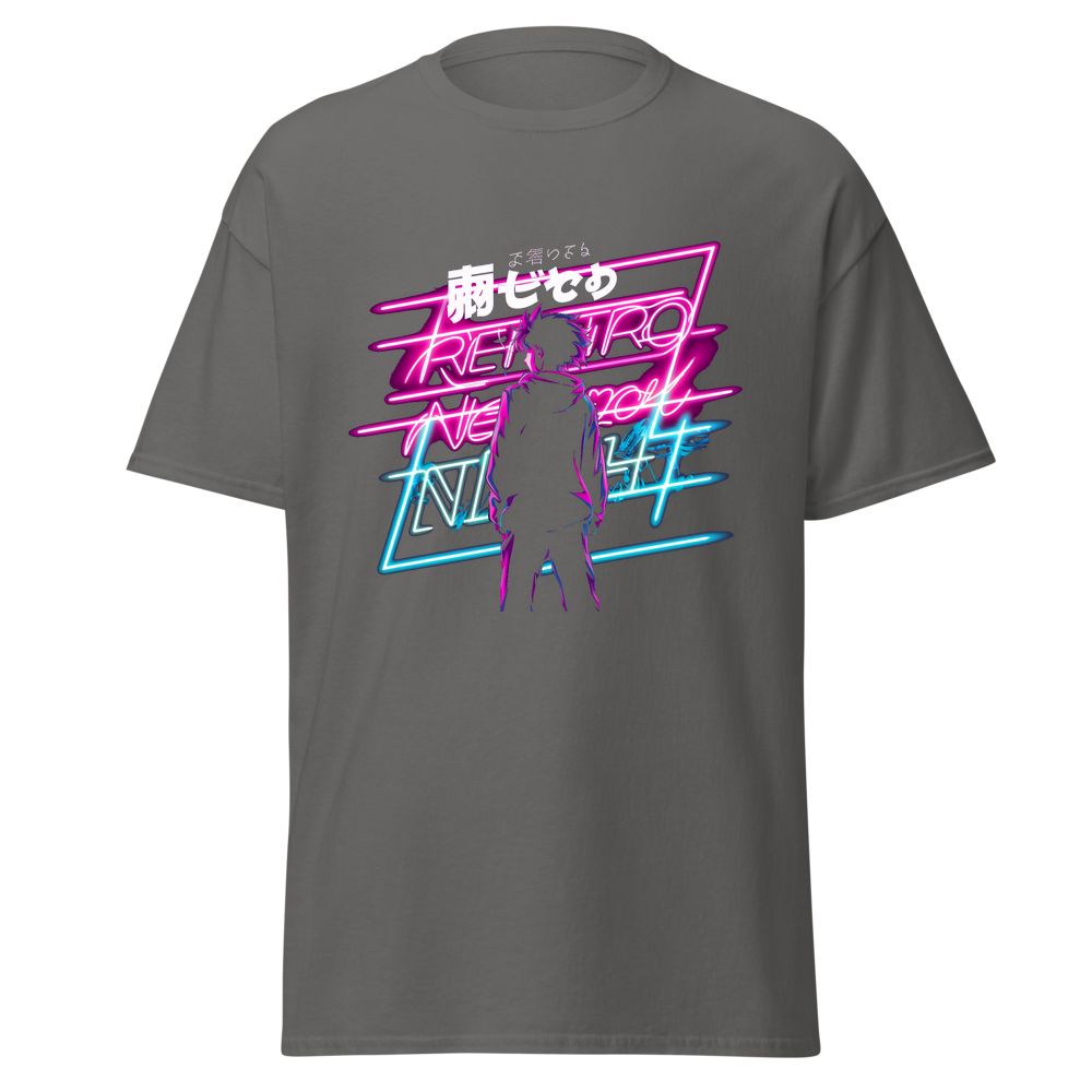 Step into a world of retro neon vibes with this captivating T-shirt. It features a striking graphic design that combines anime elements with a cyberpunk aesthetic, creating a mysterious and cool look. The soft and lightweight fabric offers comfort and a flattering fit for everyone.