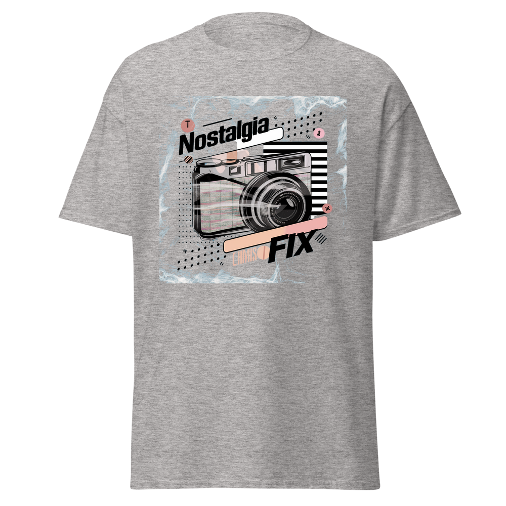 Step back in time with this classic retro graphic t-shirt. It combines a vintage camera design with abstract elements for a nostalgic vibe. The shirt is soft, lightweight, and comfortable, making it perfect for everyday wear.