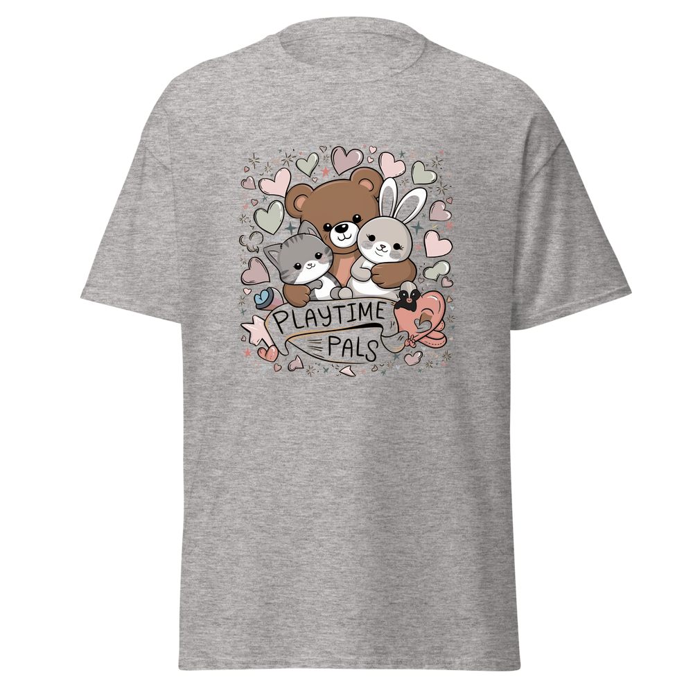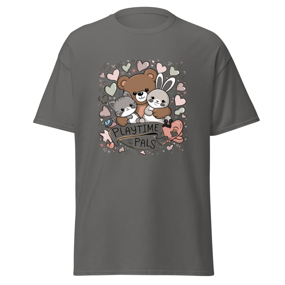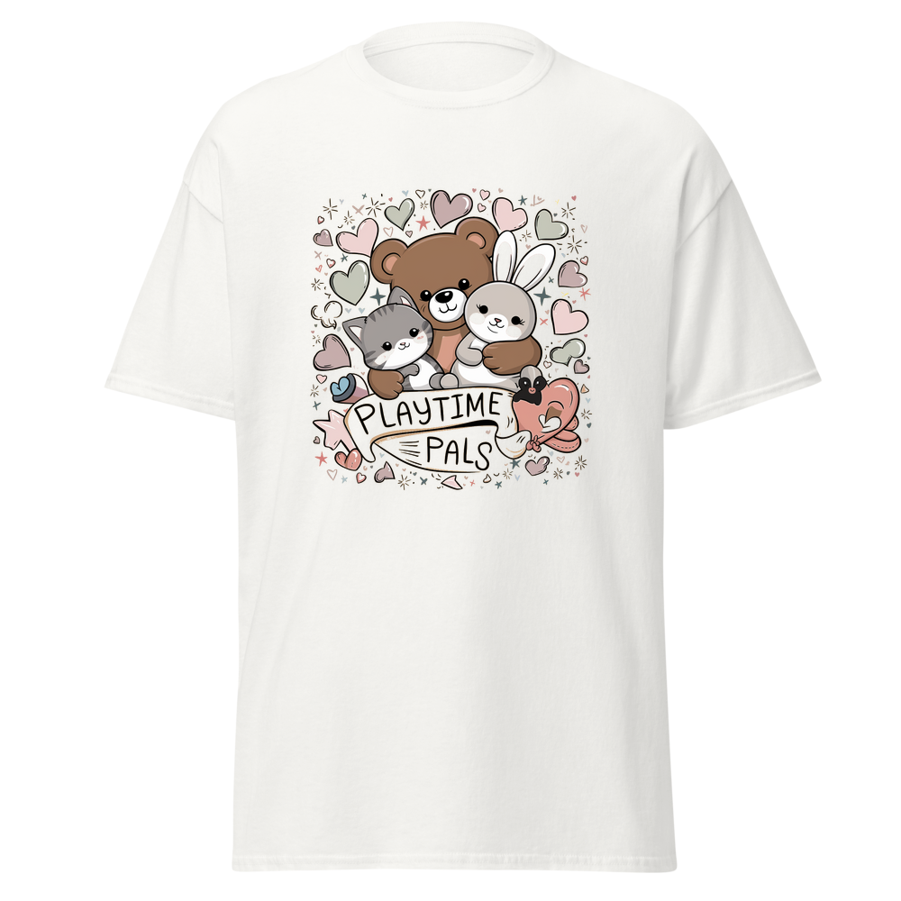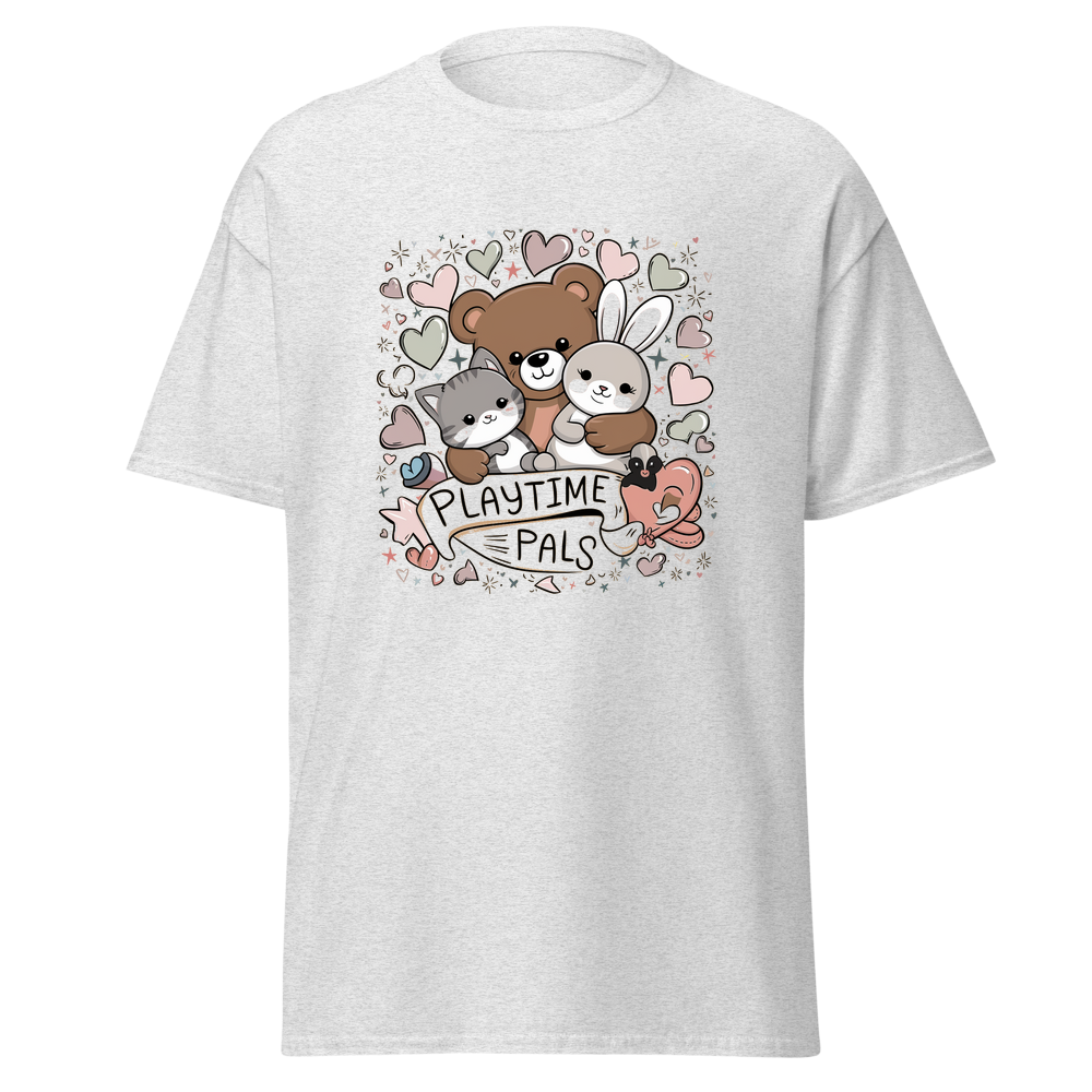 This kids’ T-shirt offers a delightful blend of comfort and charm. With a cute graphic design featuring cuddly animals, it’s sure to be a hit with children. The soft and lightweight fabric makes it perfect for everyday wear.