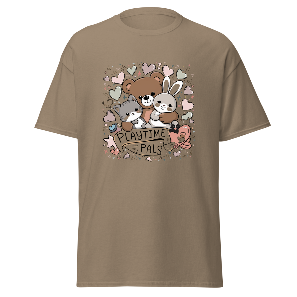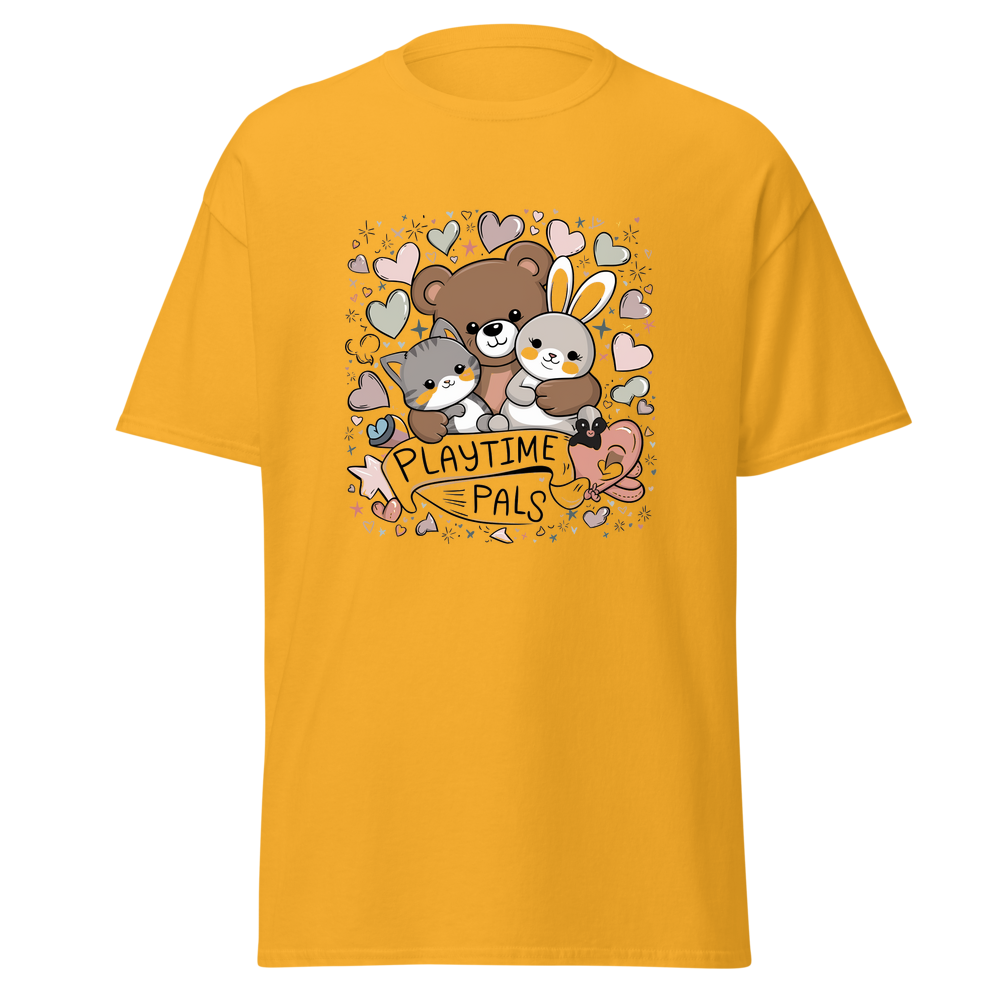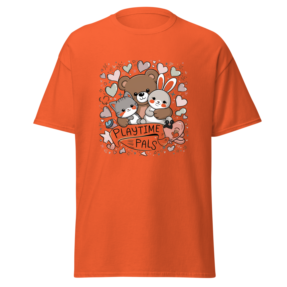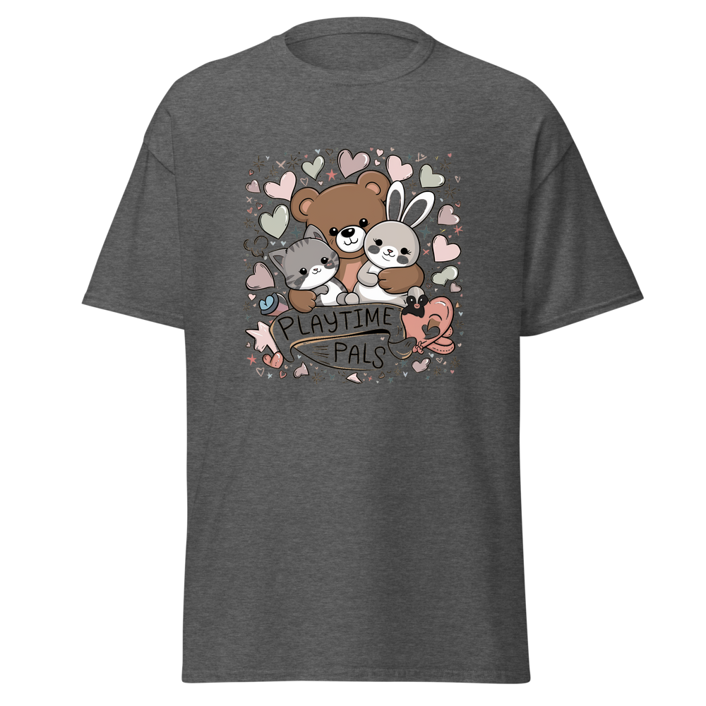 This kids’ T-shirt offers a delightful blend of comfort and charm. With a cute graphic design featuring cuddly animals, it’s sure to be a hit with children. The soft and lightweight fabric makes it perfect for everyday wear.