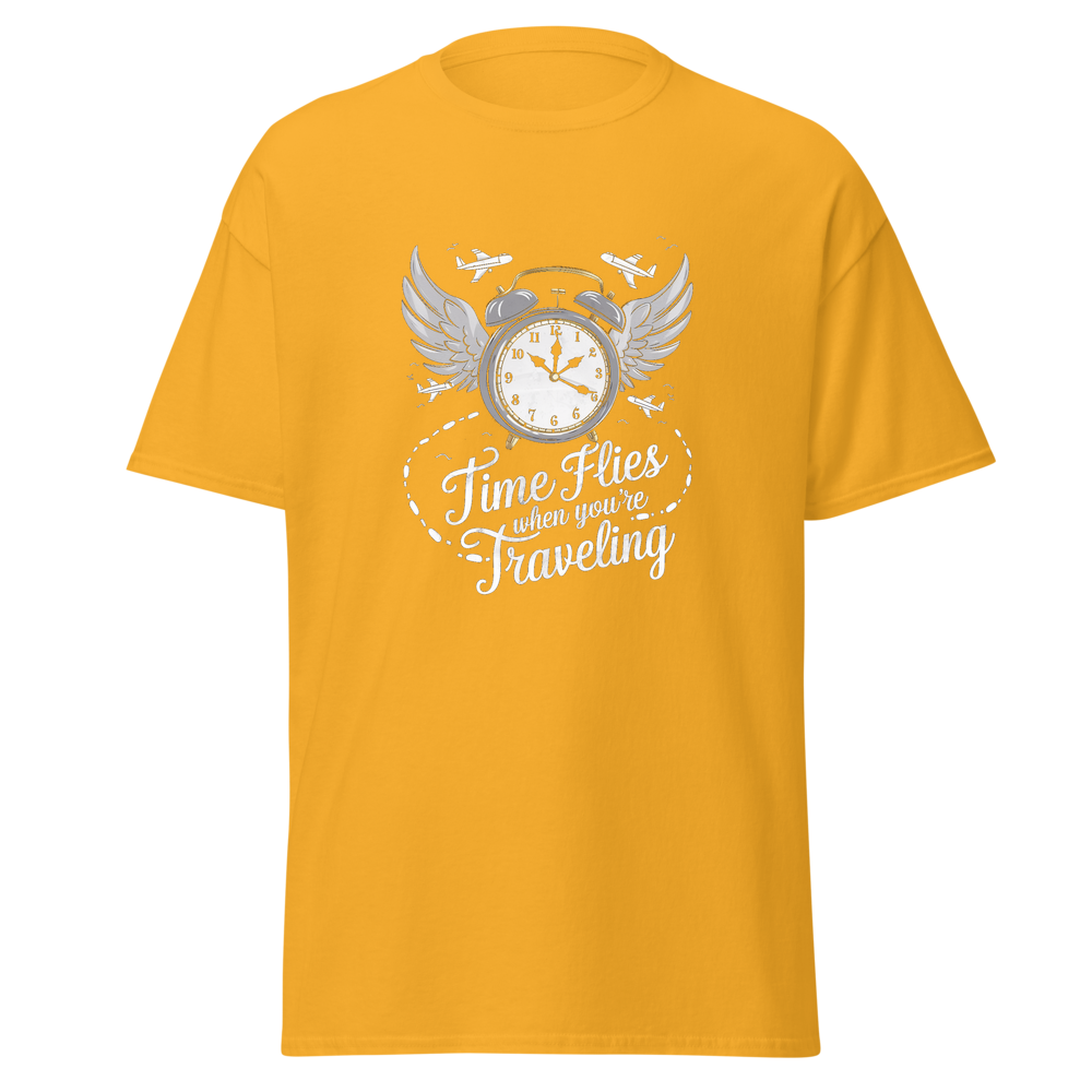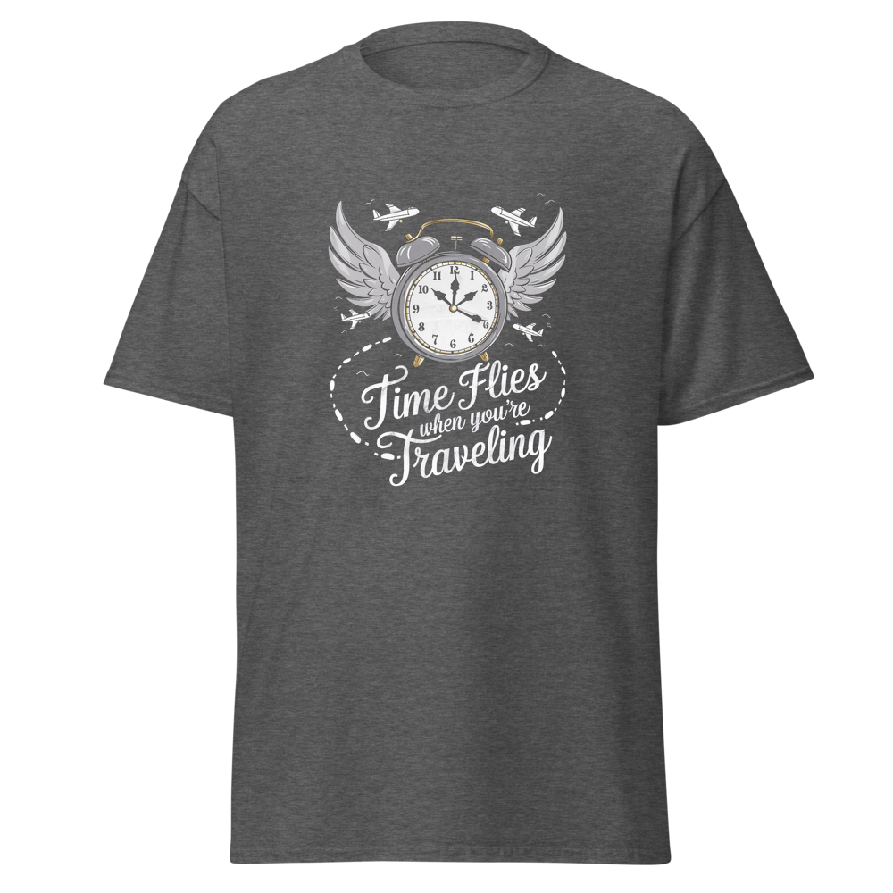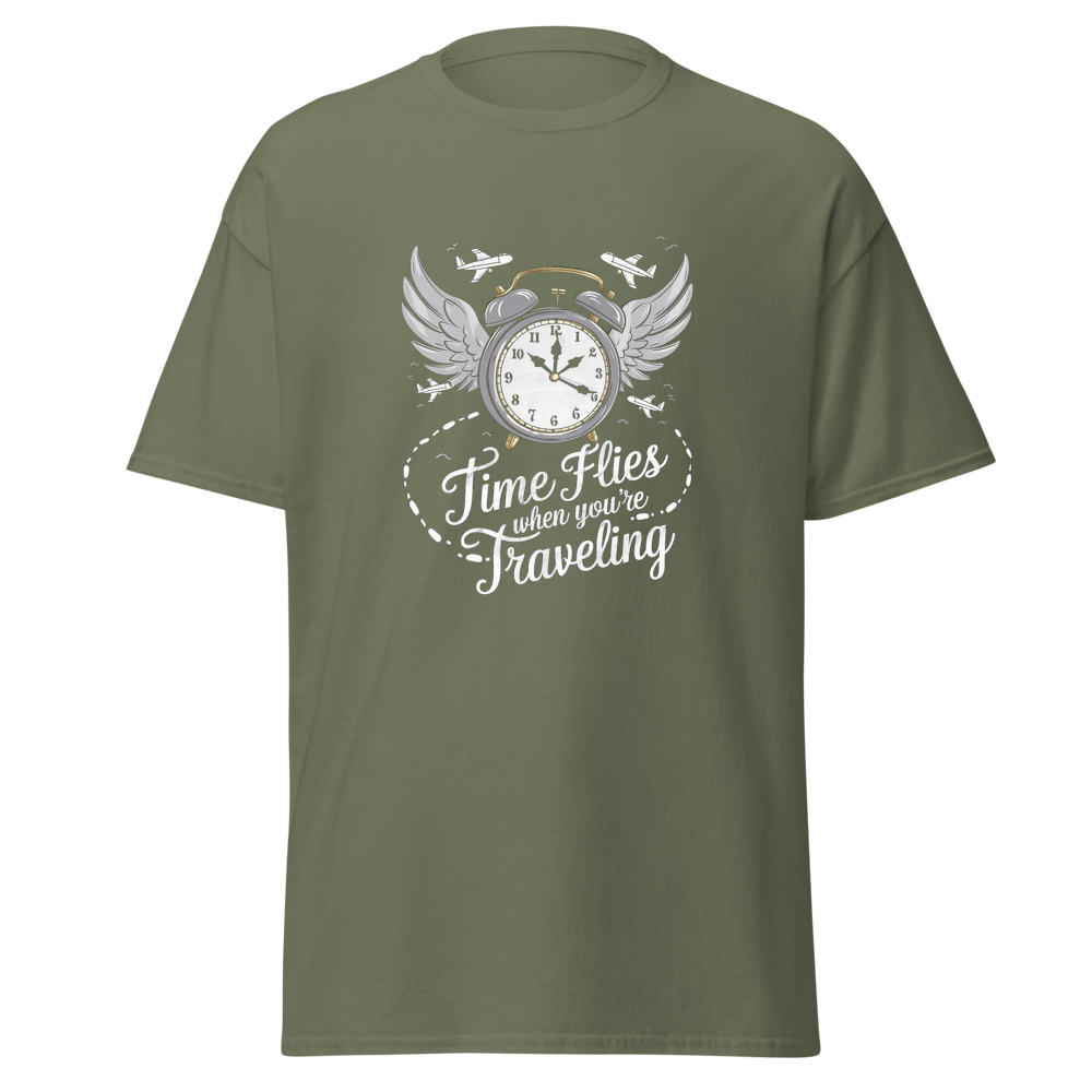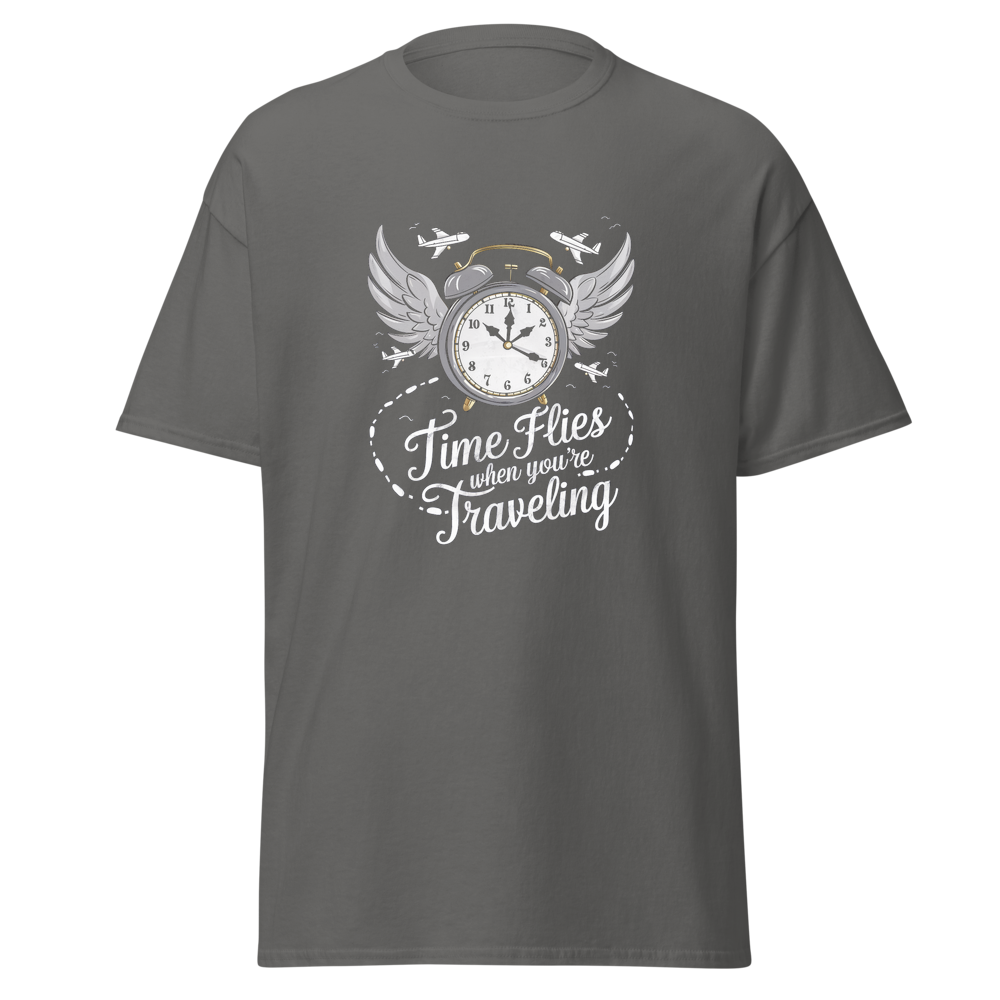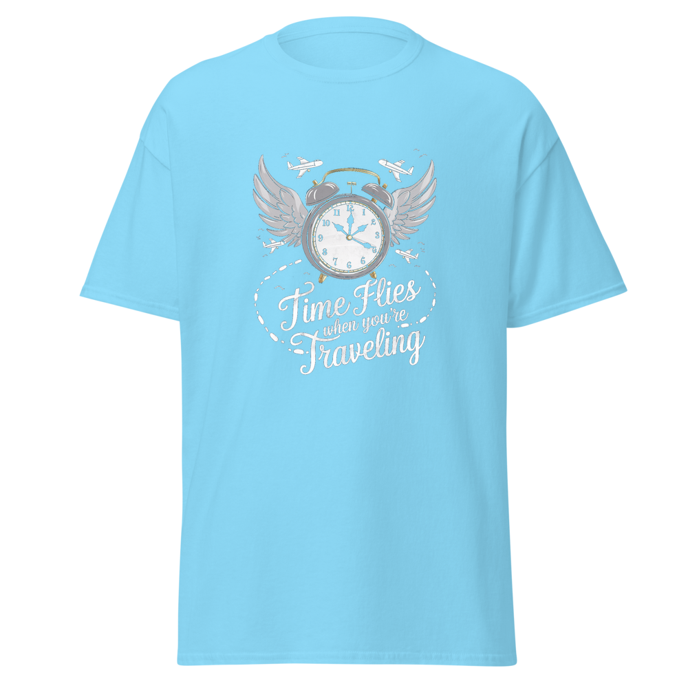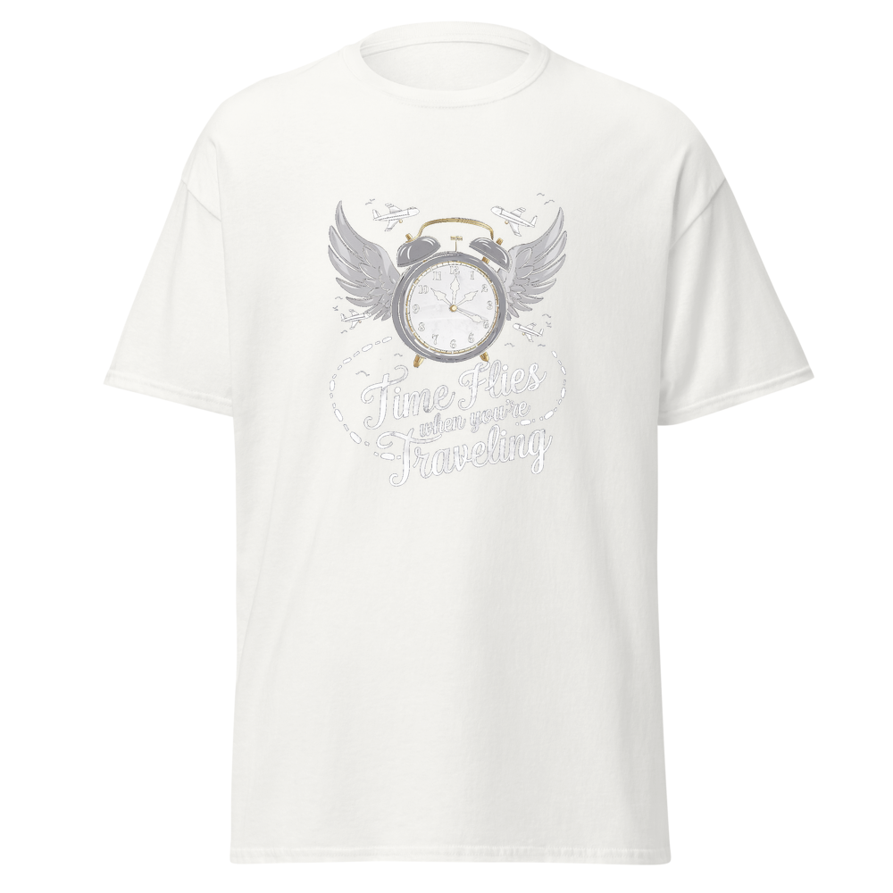 Embrace the spirit of travel with this stylish crew – neck T – shirt. It features a unique graphic that combines time and travel elements, making it a great choice for those who love to explore. The shirt is comfortable, soft, and suitable for everyday wear.