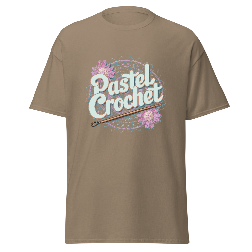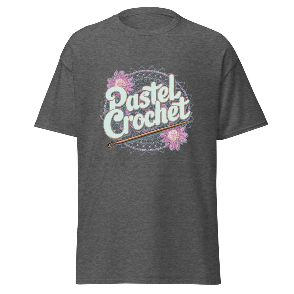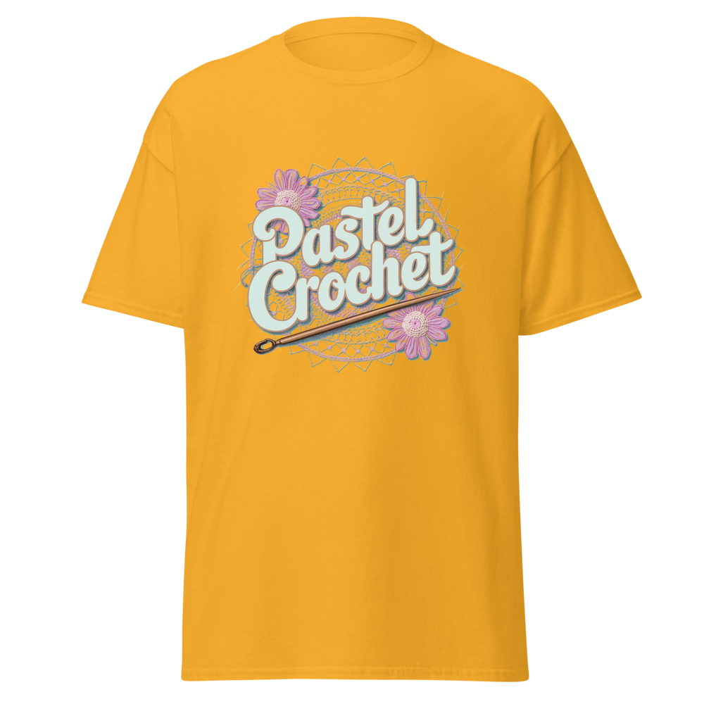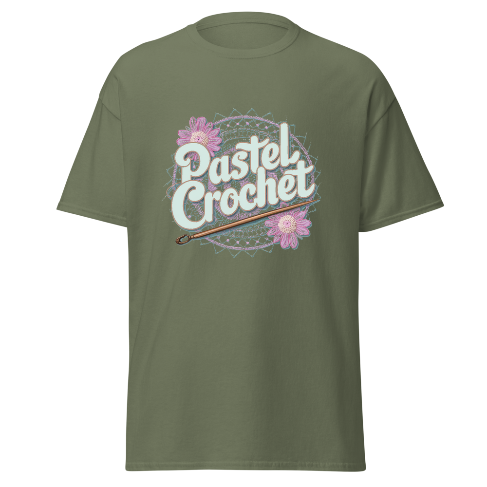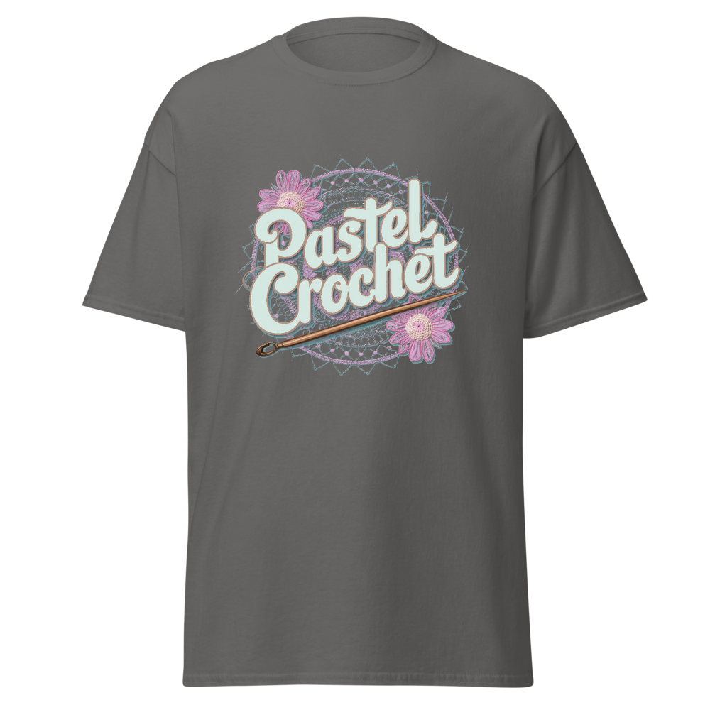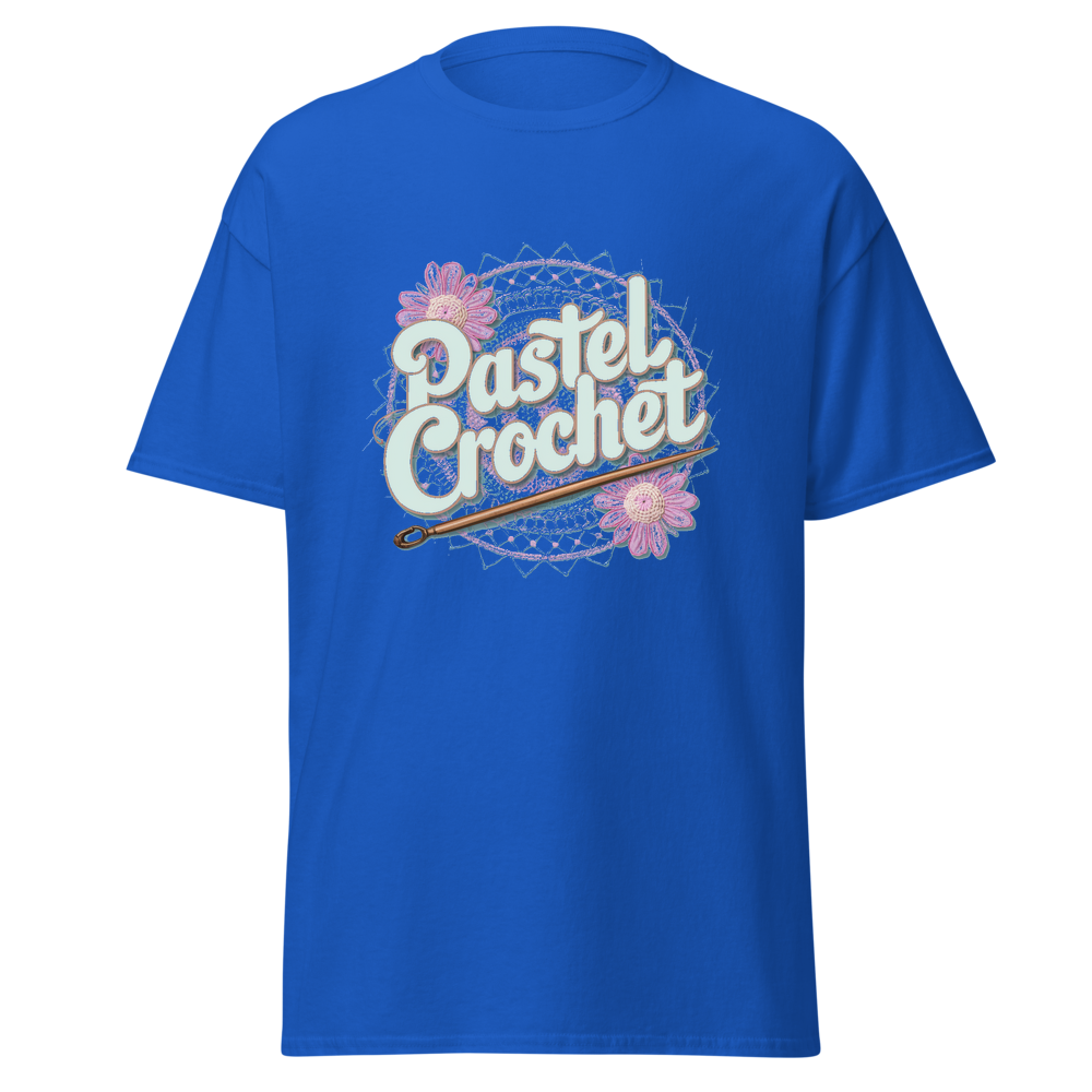 Indulge in the allure of crochet with this unique t-shirt. It combines the charm of traditional crochet with a modern pastel twist, offering a soft and comfortable wear. Ideal for those who love crafts and casual fashion.