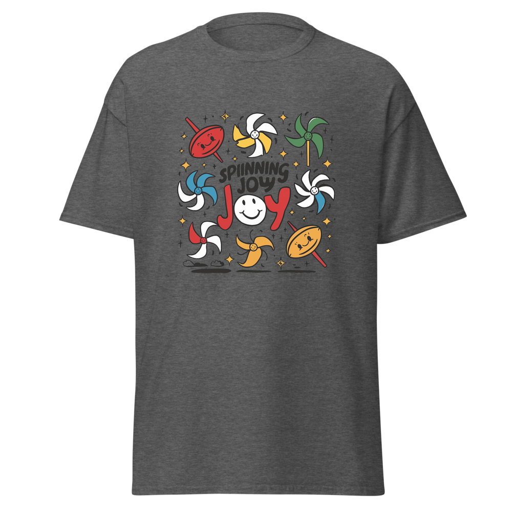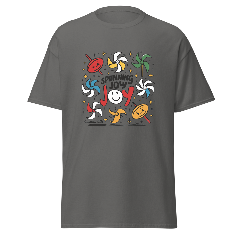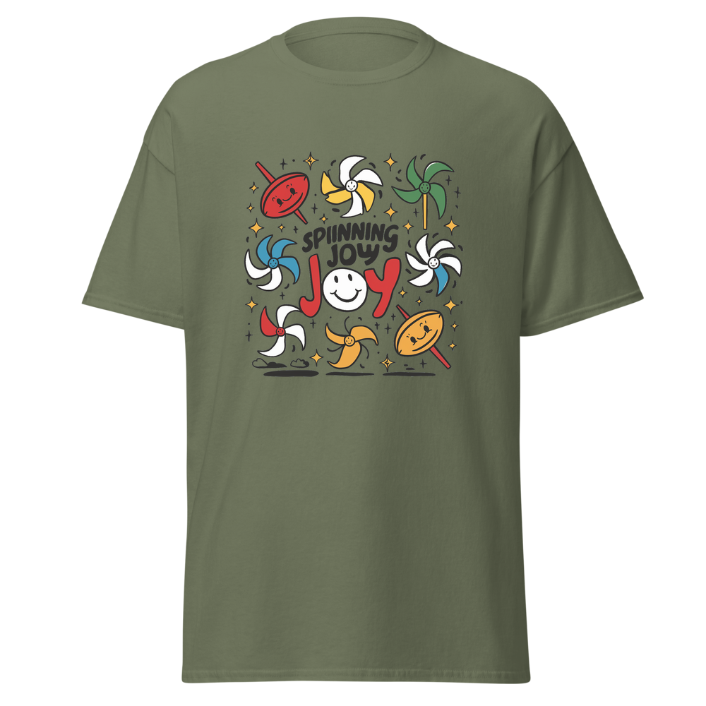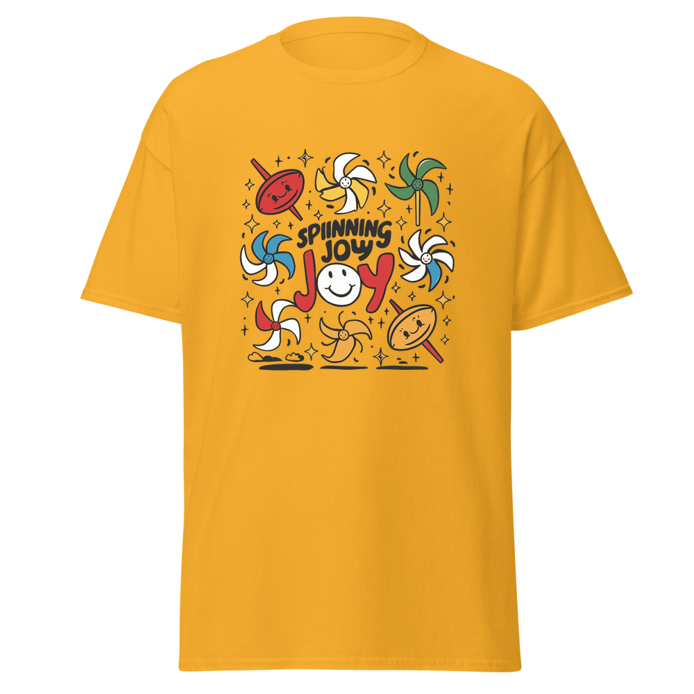 Indulge in the nostalgia of classic toys with this charming t-shirt. Featuring a delightful graphic of spinning tops and pinwheels, it’s perfect for kids and those with a youthful spirit. The soft and lightweight fabric offers comfort and a flattering fit for everyone.